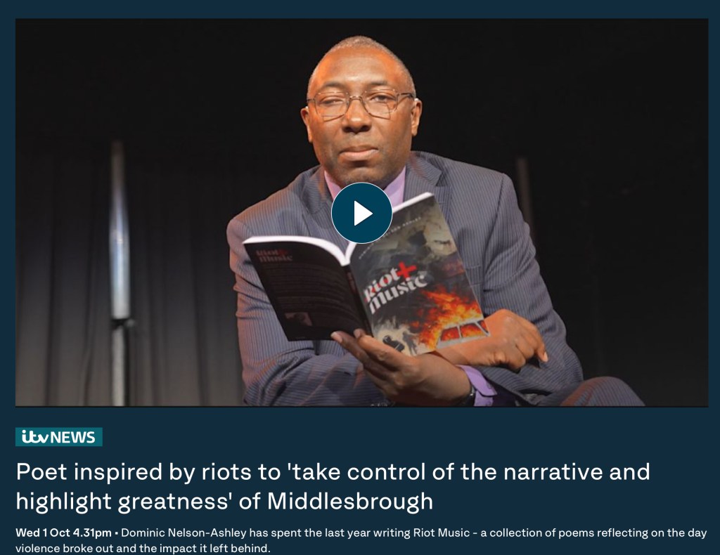 October 2, 2025October 2, 2025 Poet inspired by riots to ‘take control of the narrative and highlight greatness’ of Middlesbrough Click on photo to access the original video from ITV News. Share this: Click to share on X (Opens in new window) X Click to share on Facebook (Opens in new window) Facebook Click to email a link to a friend (Opens in new window) Email Click to print (Opens in new window) Print